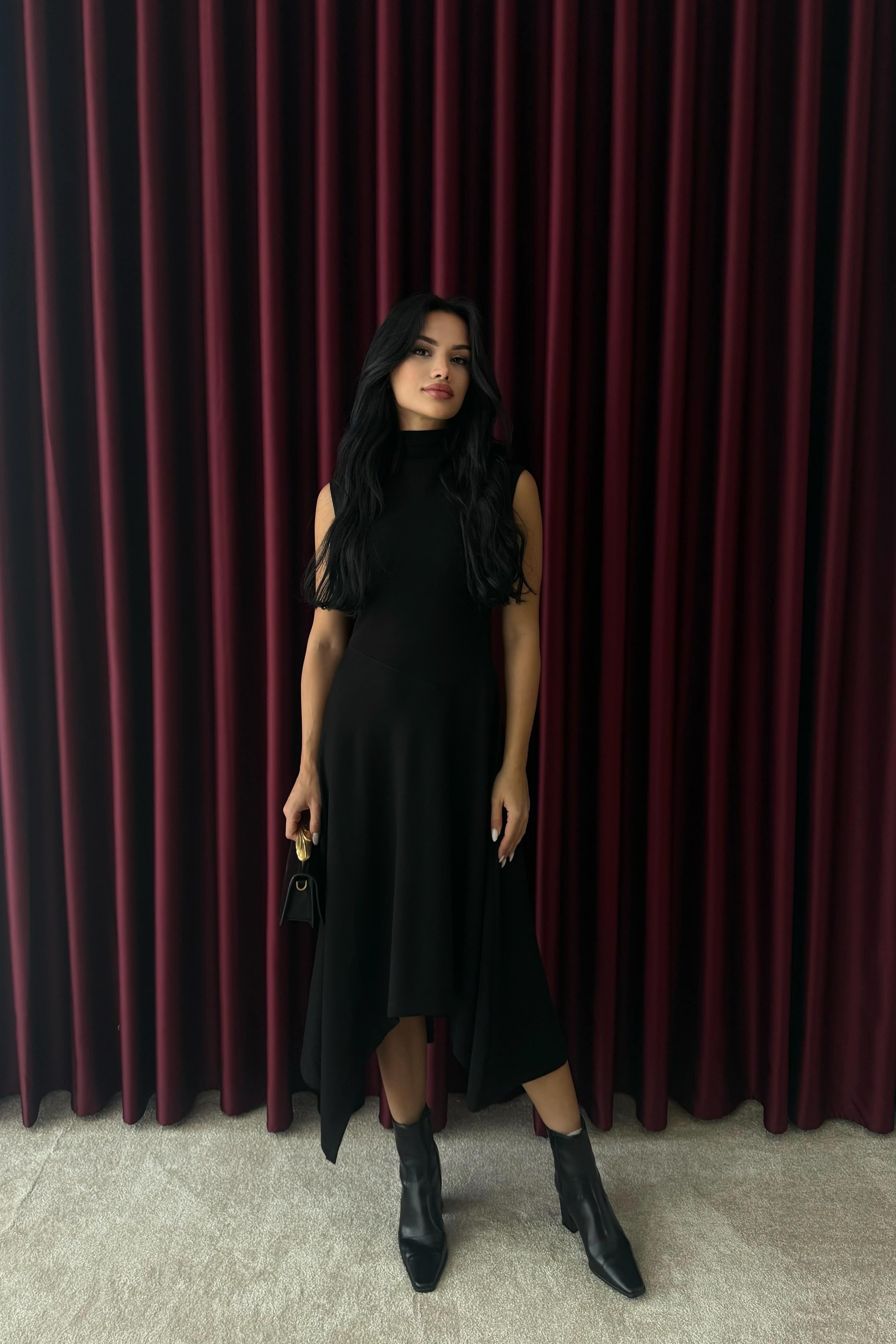 Asimetrik Triko Elbise - SİYAH Asimetrik Triko Elbise - KAHVERENGİ
